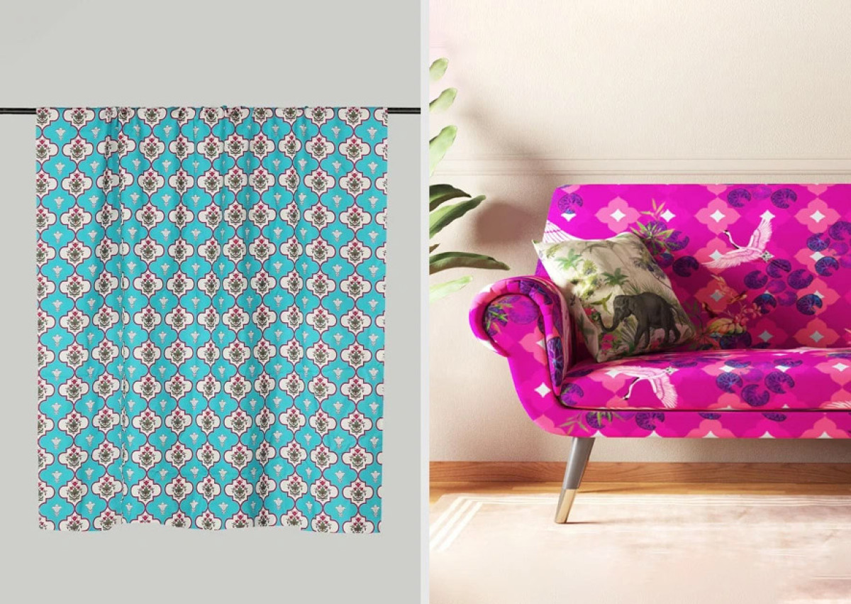 At India Circus, redefine your old furniture with fresh and unique designer upholstery fabric for furniture. The Lattice Treasures Fabric and The Red Paradise Fabric are collections from India Circus with unique designs and colourful tones, adding style and charm to the furniture.