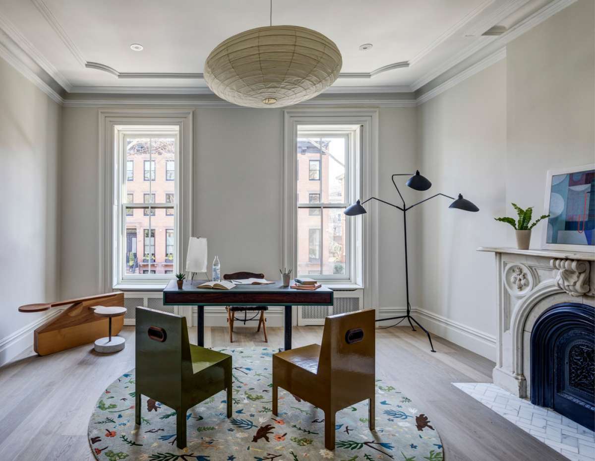 They partnered with BDDW to provide furnishings throughout the house. The existing building is a relatively compact Anglo-Italianate townhouse circa 1860, and a three-story extension was added to expand the living space.