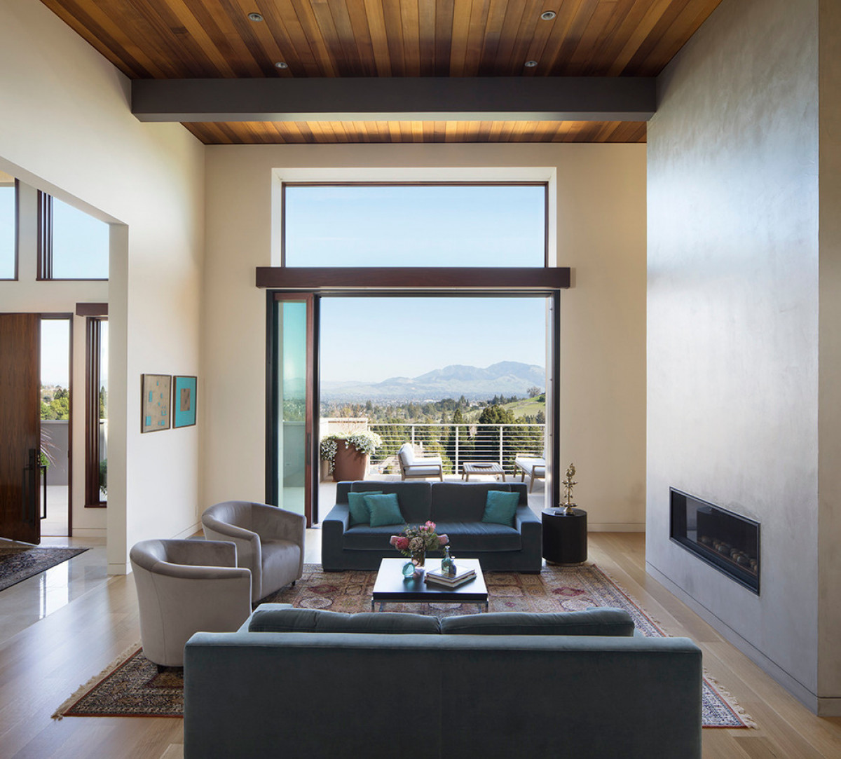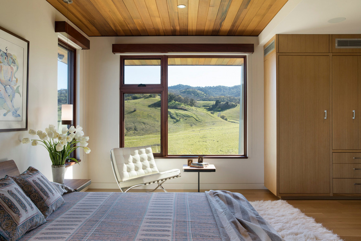 Overlooking a prominent regional park, the Carter Acres Residence commands an overwhelming view of the surrounding parkland and wildlife. It was also designed to capture the distant views of Mount Diablo. Each of the main rooms faces a mountain view, making one feel transformed by the environment as the weather changes throughout the day. Throughout both the interior and exterior, the palette is defined by organic natural materials.