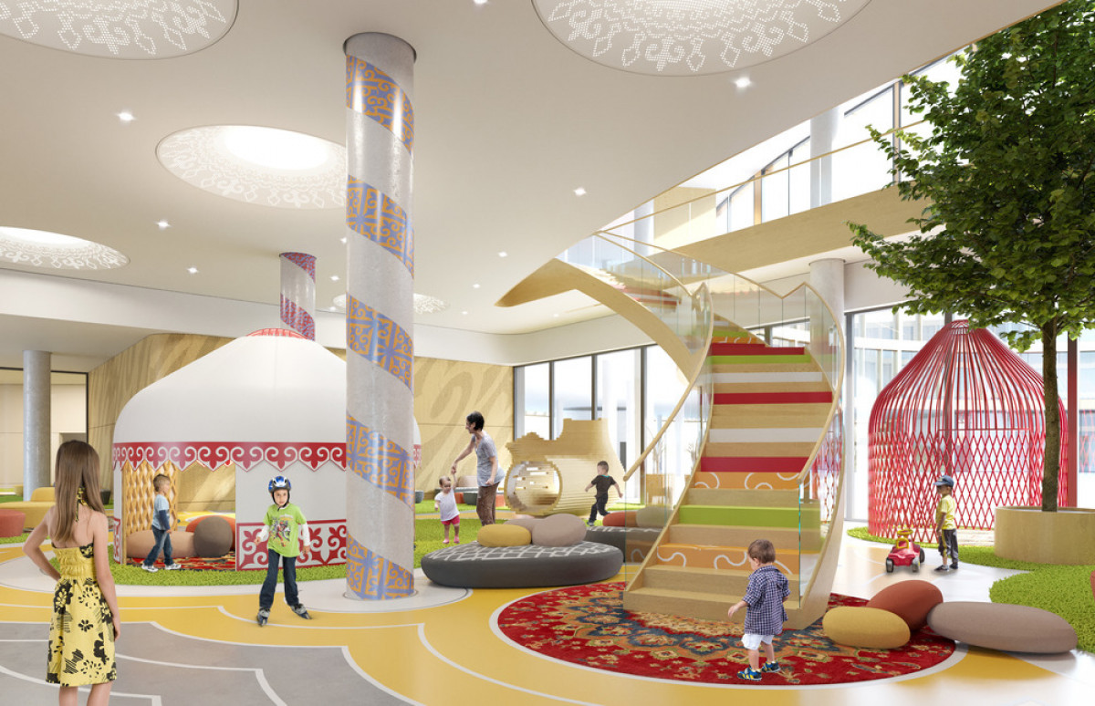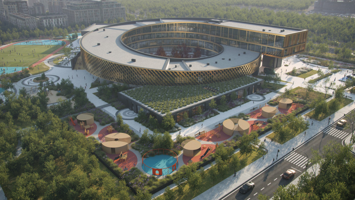 The Educational Complex in Nur-Sultan is a comfortable setting for children and teachers, the purpose of which is not only educational but also inspirational. The projected buildings of the educational school and kindergarten create a unique environment for education and upbringing through the development of moral and spiritual values, based on the synthesis of Kazakh and world culture and art. The use of natural materials emphasizes the ecological orientation of the formed environment, and individual solutions make it possible to render the designed objects unique.