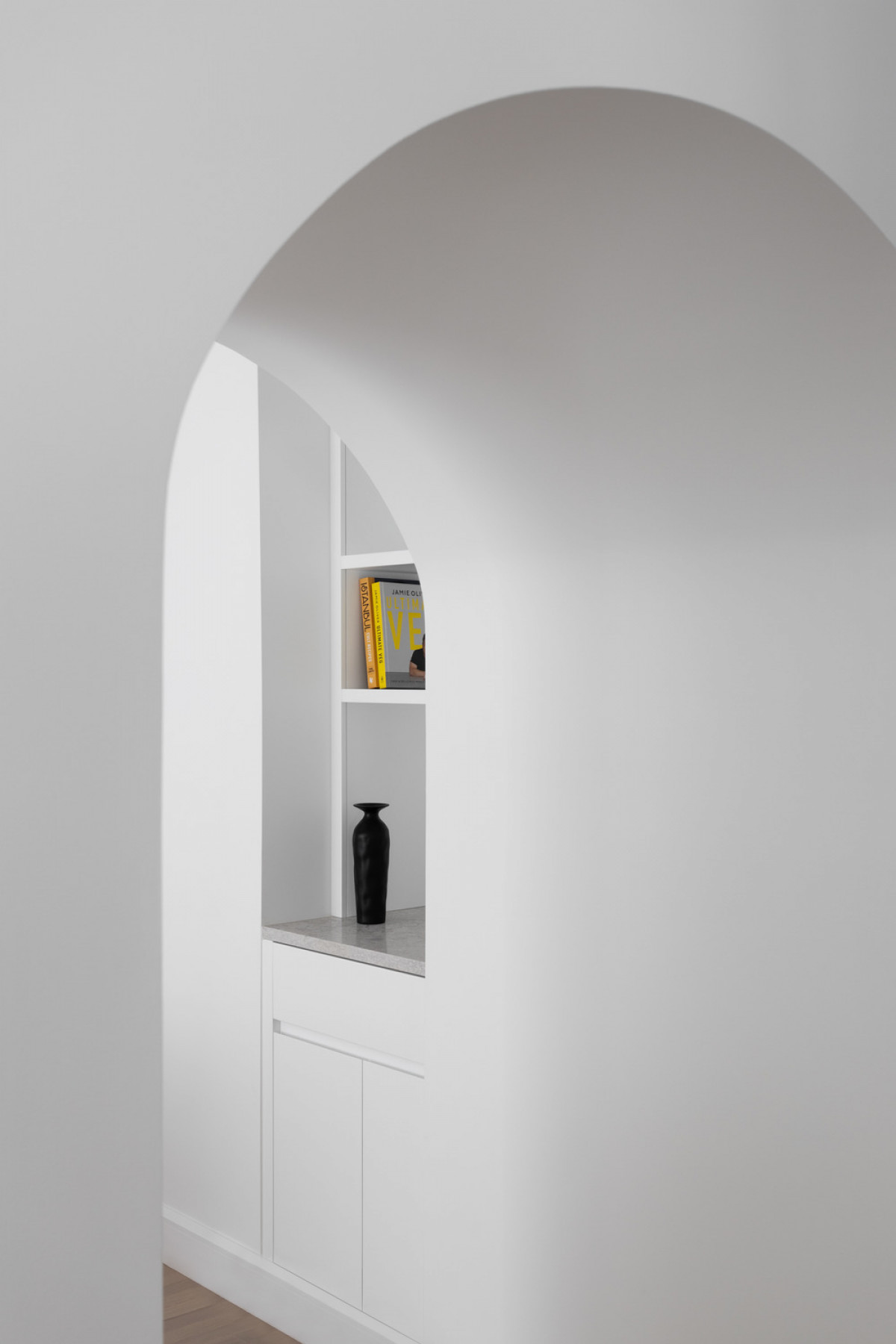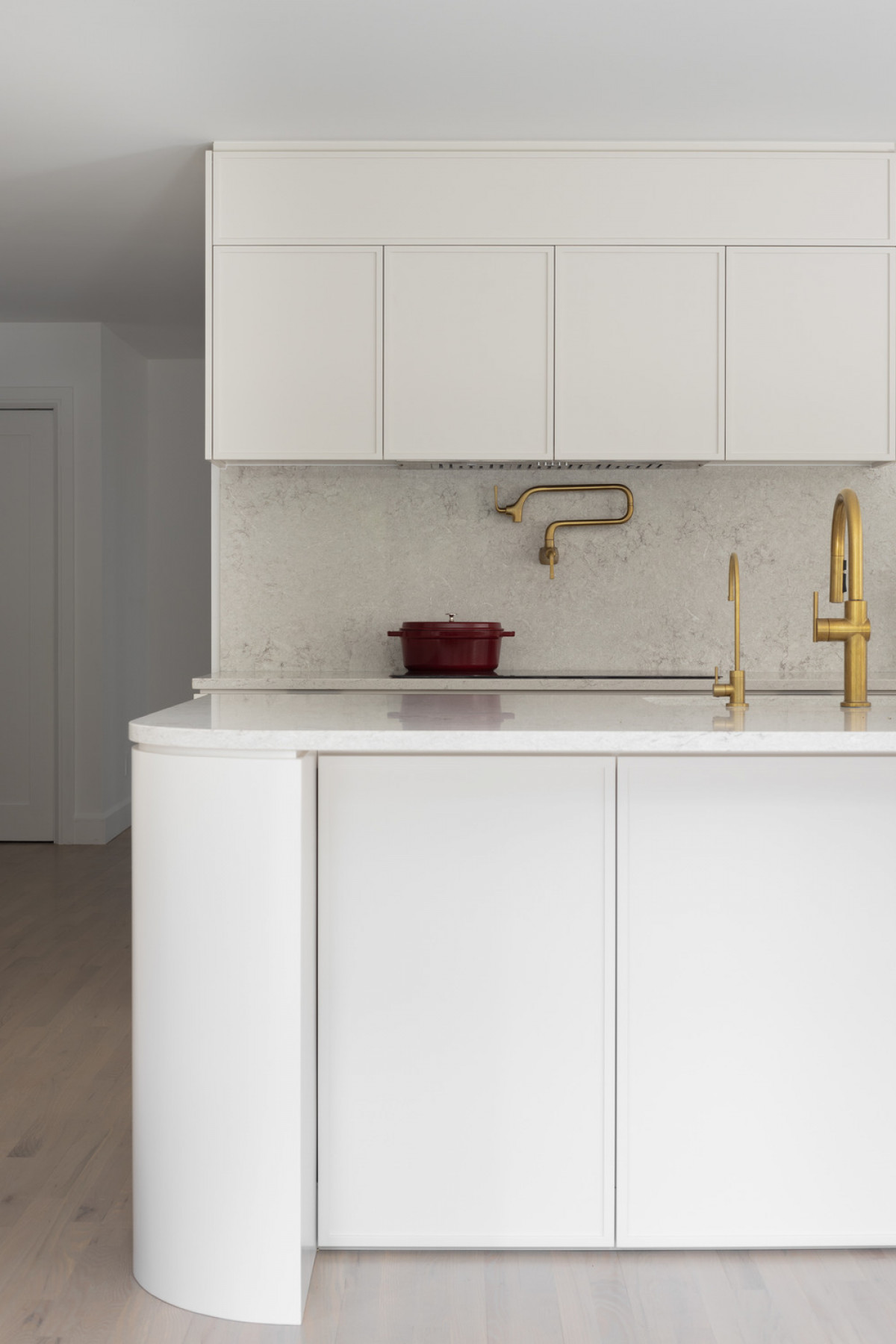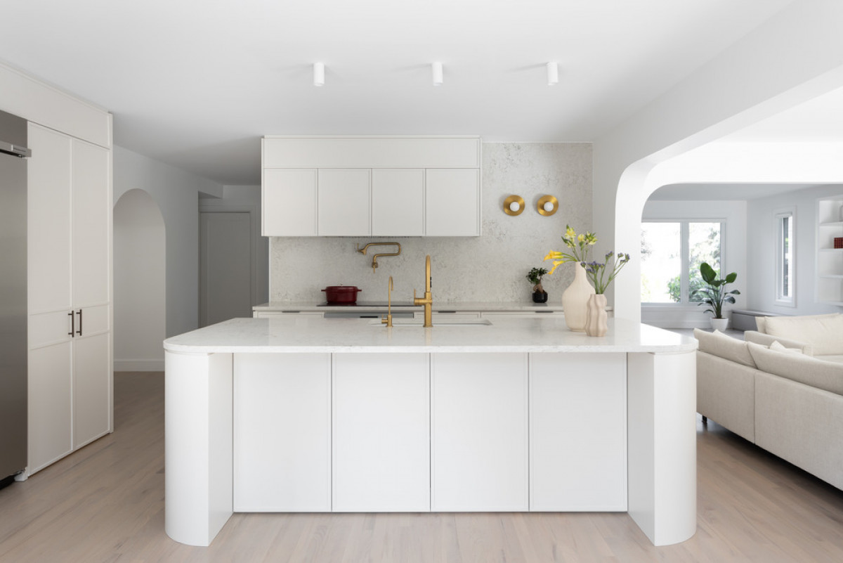 “The clients had a pretty good idea of the basic layout they wanted, and I was able to infuse their vision with some creative details,” explains Mélodie Violet, interior designer and founder of Imagine. “The elements that I proposed create a curvier and elegant interior, with a very bright and cheerful atmosphere.”