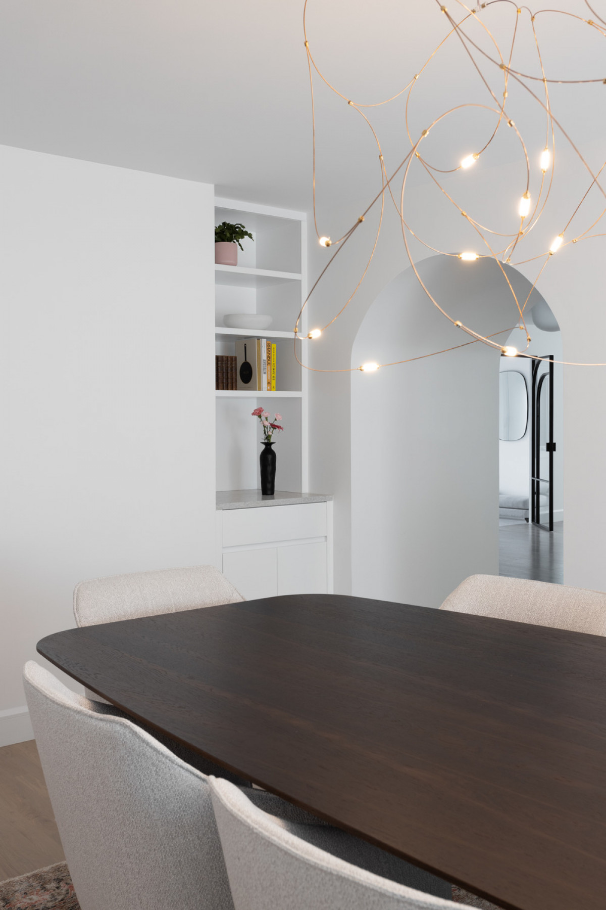 Round, curvy, Scandinavian-style lighting selections also play a critical role in the redesign, with each fixture uniquely chosen by Mélodie Violet.