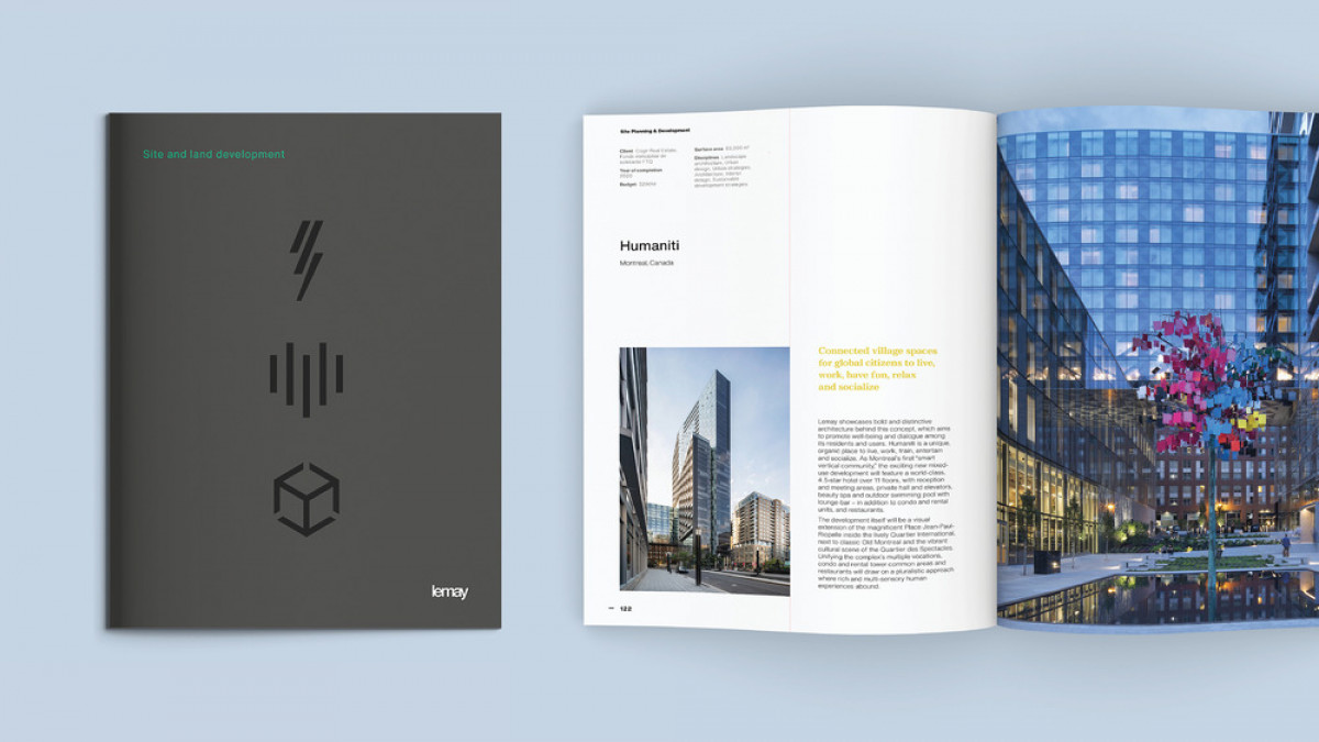 The brand image has been updated by replacing the Helvetica font – created in 1957, the year Lemay was founded - with Helvetica Now, a contemporary version of the typographic classic. In the same vein, the addition of the Montreal-based Grafier Black Display font establishes a direct link with the birth of the firm, which was founded in the Sud-Ouest borough of Montreal over 60 years ago.