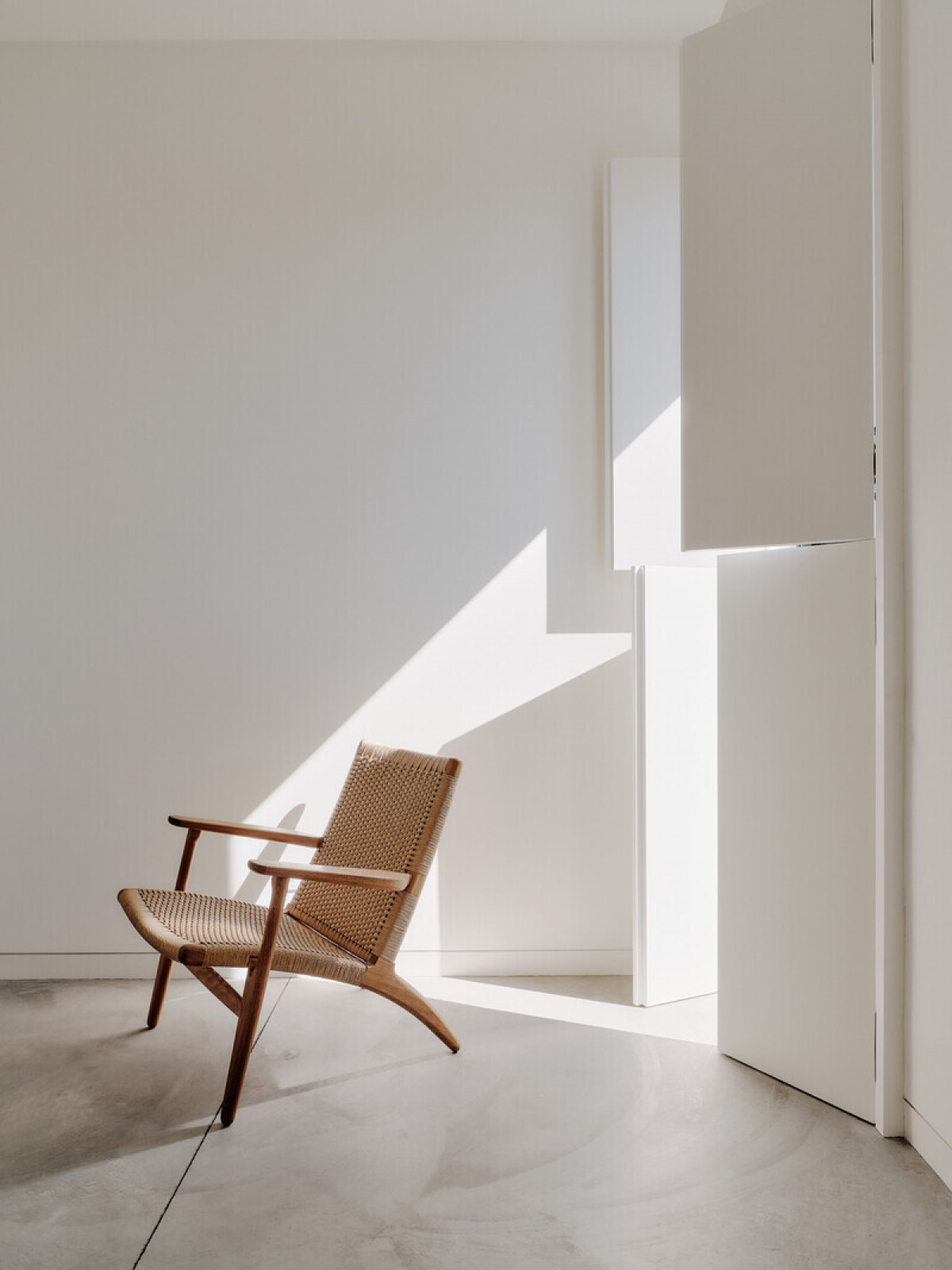 In response to the owners' desire for a quietly sophisticated ambience, Min Design employed durable, unfussy materials and a minimal colour palette. This design ethos serves as a striking counterpoint to the existing heavy timber framework of the building while providing a tasteful backdrop for the family's artwork.
