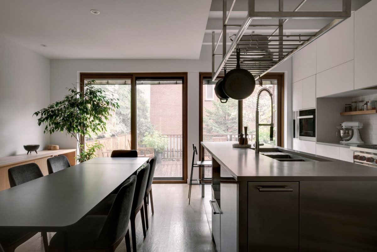 With attention to even the smallest of details, the renovation of this Montreal duplex manages to make different styles cohabitate, creating a project in the likeness of its clients. Following a fire, the owners wished to refurbish their 2600 square foot residence in the Notre-Dame-de-Grâce neighborhood. On the program: opening up the ground floor space, optimizing the openings onto the back garden, maximizing natural light, and furbishing the basement and second floor to respond to the family’s needs.