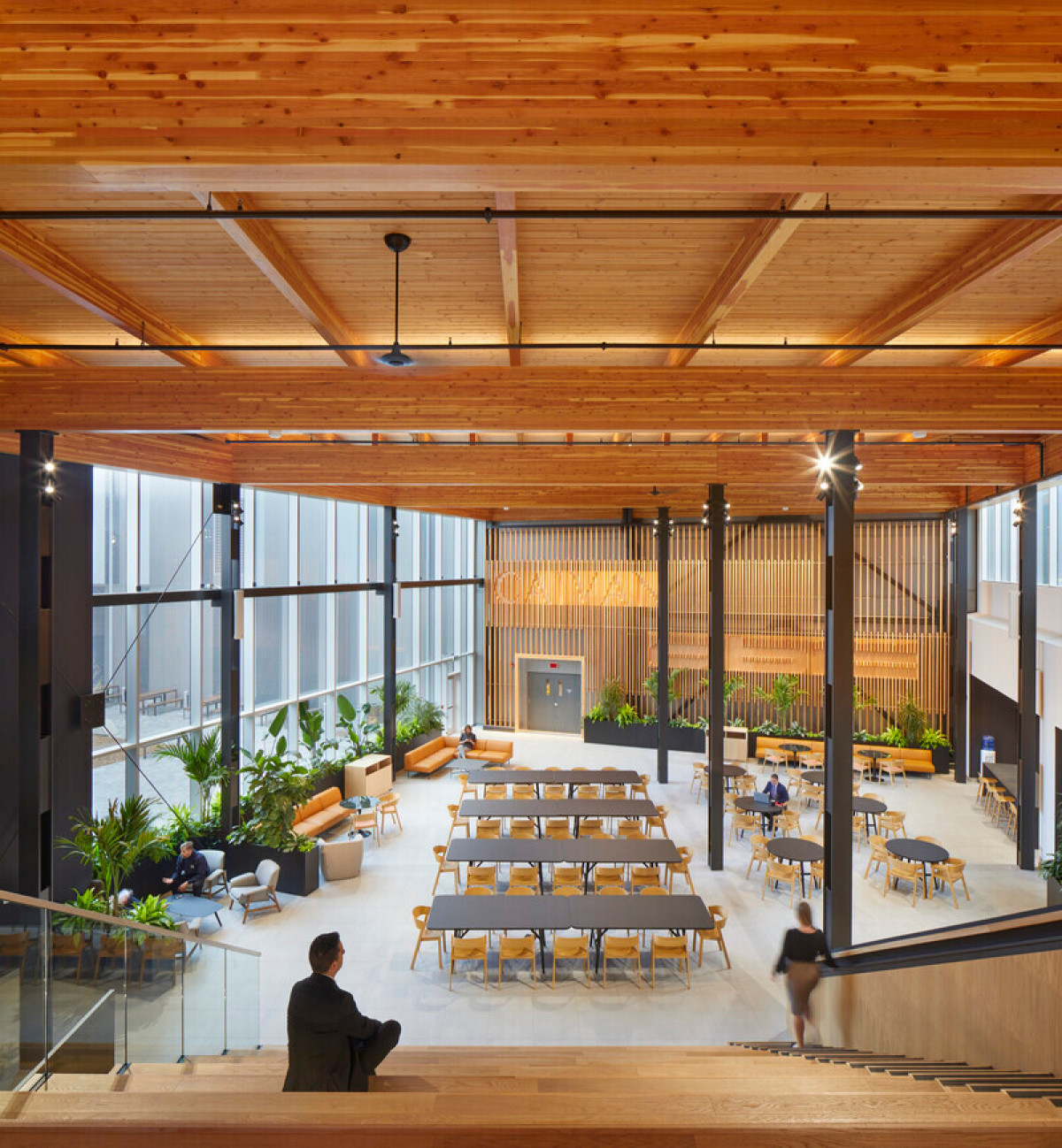Innovation, precision, and clean approaches to design were essential in this project. The building integrates wood and steel columns, leaving nothing exposed, and everything fits together seamlessly. Mechanical ducts are hidden from view, and electrical work is embedded in the structure. Everyone on the team needed to be part of the vision. Every detail of the design was developed in collaboration with the applicable trades.