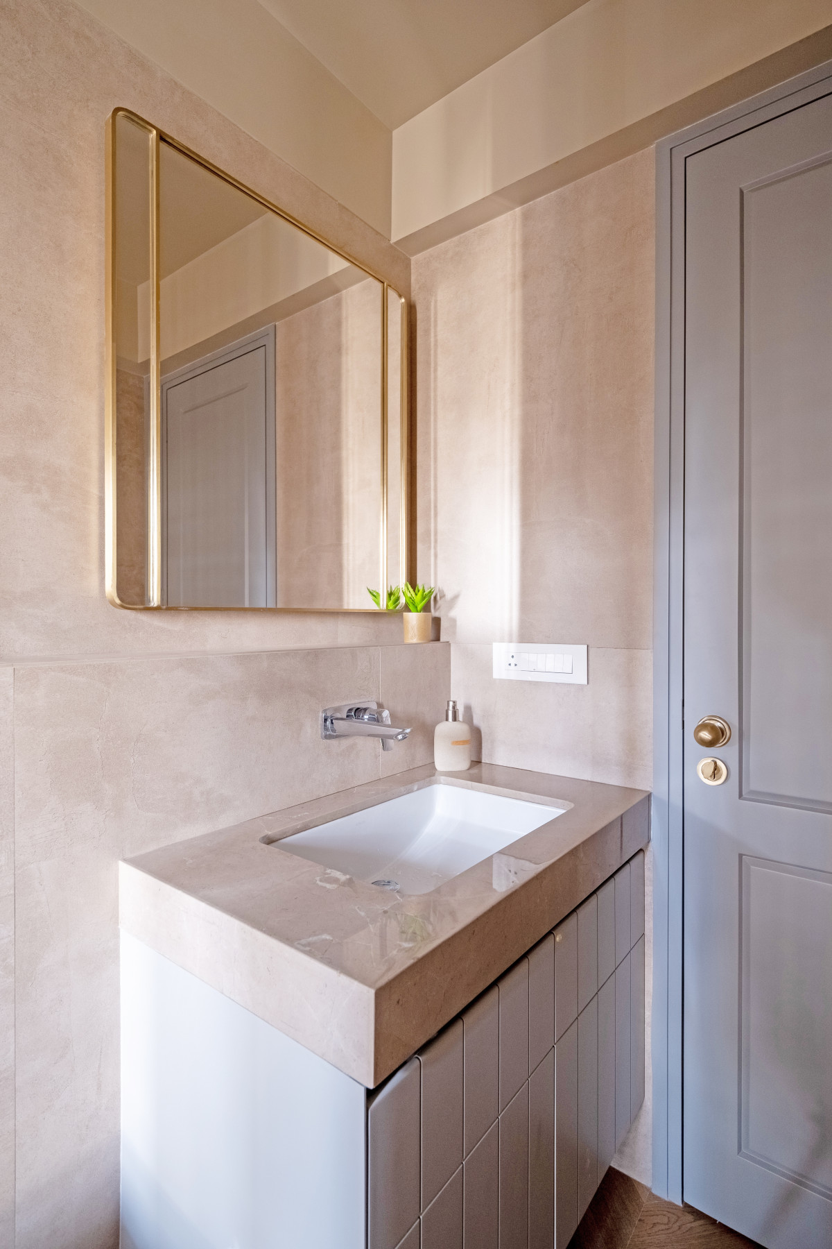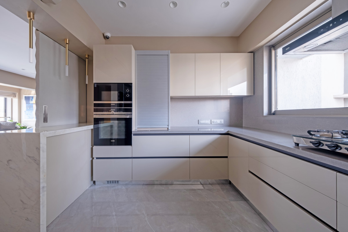 Client brief The Fluid Home takes the idea of flexible spaces and fuses it with modern sensibilities. The house, built upon an area of 1500 sq. ft., is designed to create a warm, modern and chic abode for a nuclear family. The house is varnished optimally to let in natural light, while the design palette is inspired by soft pastels and neutral hues. The Open Kitchen which ties in seamlessly with the Living Room is separated by a moving wall, adding an eclectic element to a space that is quintessentially straight-forward. Consequently, every space contributes to speaking a coherent visual language.