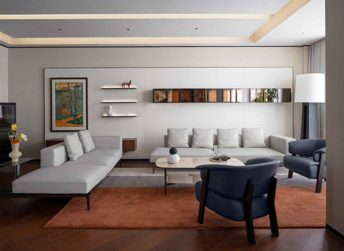 Client brief The new Tengda Construction Headquarters project is located in the city of Hangzhou, the latest interiors project by Tales Creative. The offices are defined by a bright aesthetic inspired by the elemental forms and colors of modern art, as well as Tengda’s open-minded business approach. The Entrance Lobby has an abundance of natural light, and features a lounge area defined by a crisp, contemporary look. This sense of openness is continued in the office spaces on the floors above, while the lower level provides rooms for dining and socialising with a salon-style aesthetic.