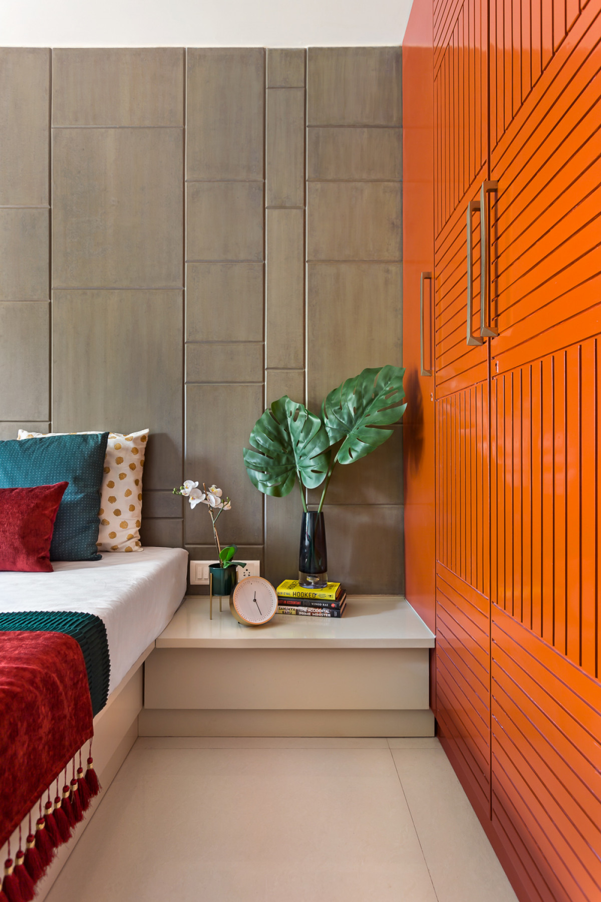 Client brief Urban palais was 630 sqft sample flat for a builder, the brief was clear, it needed to be a home, a space which was not just aesthetically pleasing but also practically sound. We needed the space to adapt to a large family, keeping in mind their storage expectations and future needs but at the same time, it also needed to be a beautiful space, one that has a 'happy' vibe and creates a feeling of 'home'.