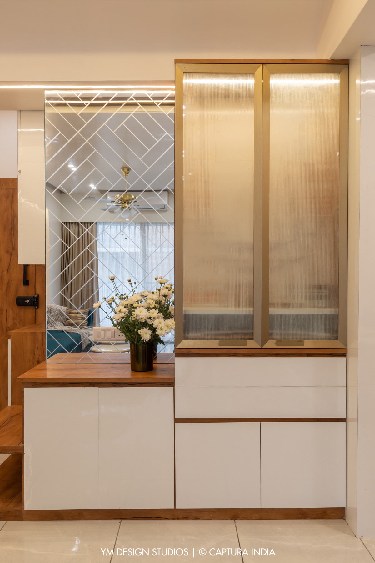 Client brief House of joy celebrates the journey of a young couple by reiterating the sense of vigor in their first of many houses. Coherent filet forms, pastel highlights along with a neutral pallet and accentuated hints of gold in the living room instills the palpable contemporary enthusiasm. Pastel Teal being the focus of the living and dining effectively contrasts the patterns in background while the neutral rule in subtlety. This Udaipur house playfully incorporates the idea of careful cohesion with arciforms and intersecting volumes in the most unanticipated fashion.