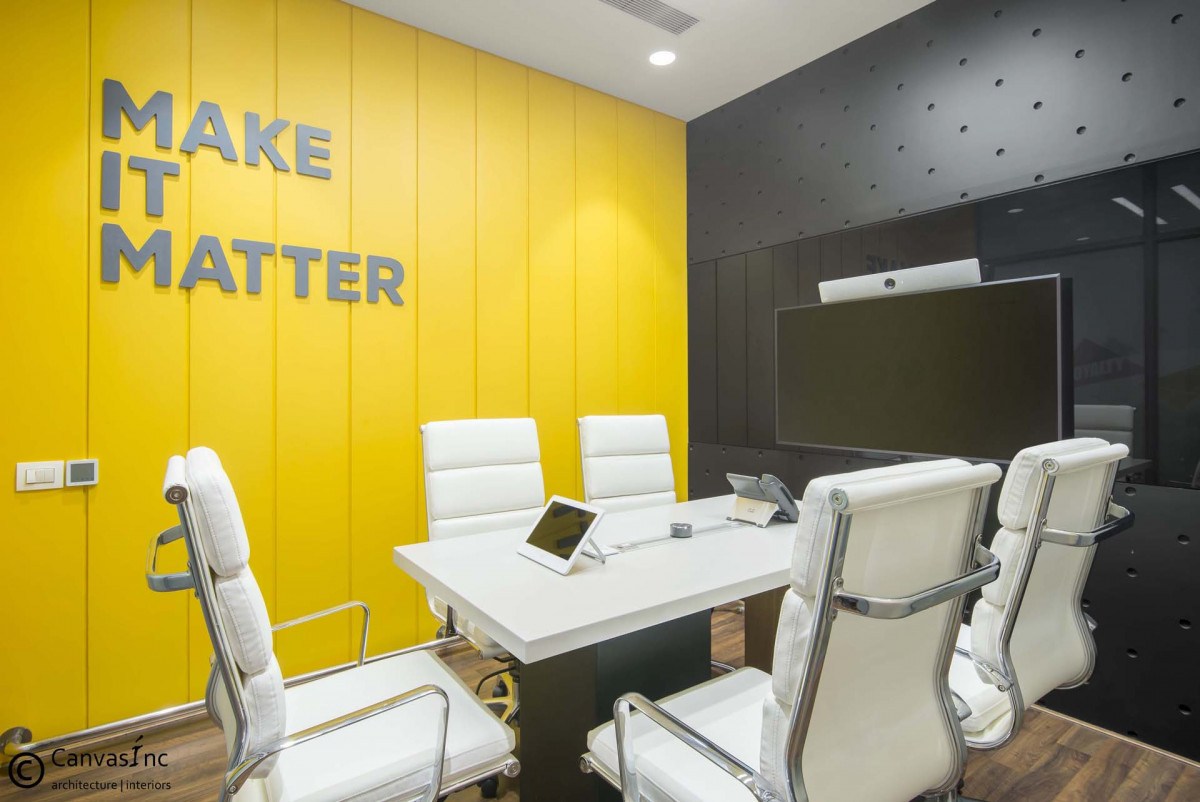 Client brief A balanced Peppy & Professional office design for this Multinational company's India Headquarters. The Pop-up colors used all over the office are all according to the companies branding guidelines followed internationally. An office where the Clients feel welcomed and the employees feel fresh and cheer full.